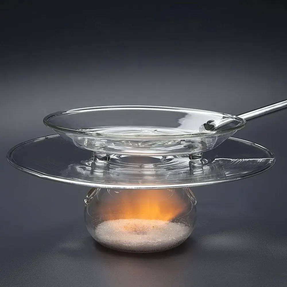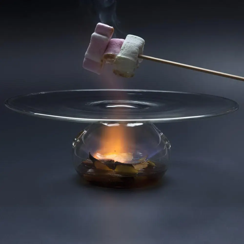 Vulcano is a dish specially designed for use with fire inside. perfect for preparing any dish using fire as the center of the dish. to cook au gratin any caramel pieces. to heat up a glass of cognac or it can also be a small improvised kitchen at the table to sauté strawberries in our Paella Glass (160/0028).