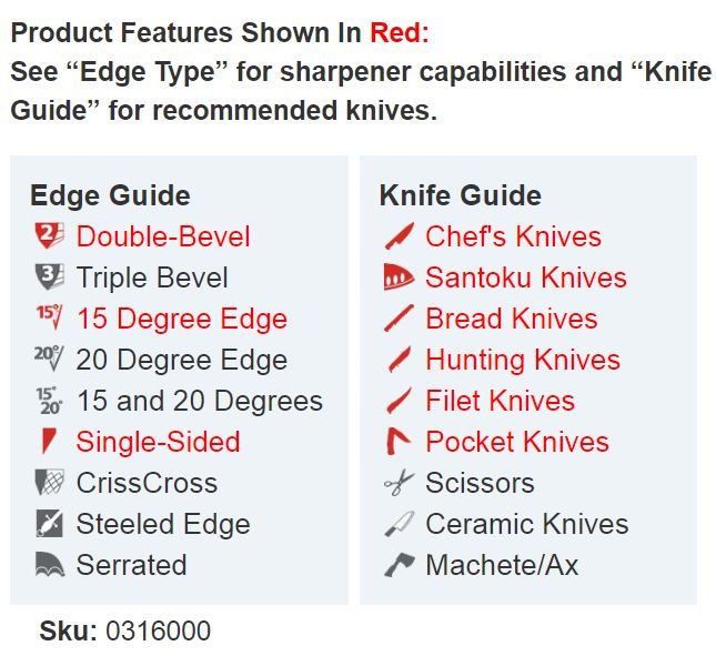 Using high precision elastomeric angle guides, the Model 316 will eliminate all the guesswork and provide users with a reliable sharpening method that guarantees a factory quality edge in just minutes.