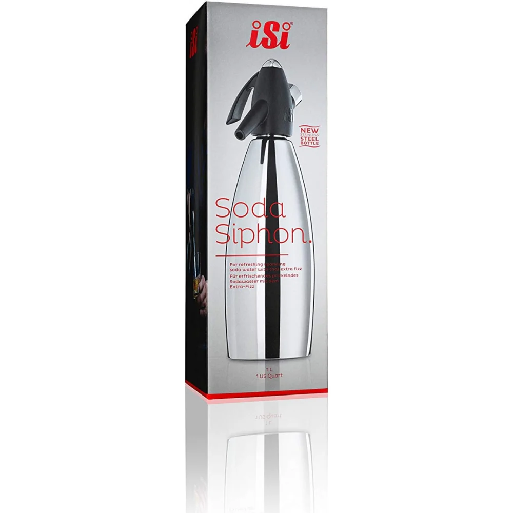 iSi Soda Siphon guarantees safe and easy handling for your sparkling moment! Elegant stainless steel bottle. Comfortable, simple operation. For homemade fresh soda water. Small, handy & flexible; suitable for small kitchens. Easy operation and cleaning. Completely dishwasher safe. Many accessories for even more inspiration. Made of high quality stainless steel for long life and safety. NSF-certified and developed for professional kitchens. Fill the siphon directly from the tap with cold, fresh water, unscrew an iSi soda charger and seconds later enjoy fine sparkling soda water.