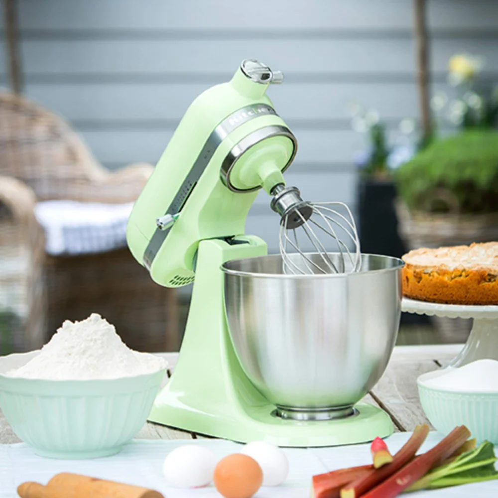 The new KitchenAid Mini packs legendary power and functionality in a space-saving design that’s 25% lighter and 20% smaller than the classic KitchenAid Artisan Stand Mixer.