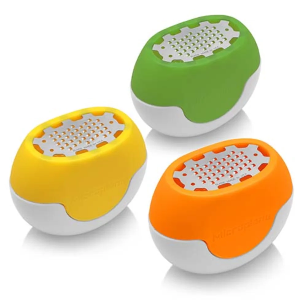 The Microplane flex zest is a compact zester that conveniently flexes to adapt to the shape of any citrus fruit you wish to zest. The small stature fits organically into both the curve of your palm and around the many shapes and sizes of limes, lemons and other citrus fruit. Featuring microplane’s made in the USA, ultra-sharp zesting blade, This cute and fun kitchen tool creates flavorful and aromatic zest quickly and effortlessly. This kitchen prep item is designed with a dish that sits inside the flexible top to conveniently capture fresh zest – simply lift the silicone top off and it’s neatly piled inside the dish. Buy this Microplane zesting tool today! It makes for a great gift and kids will love to use it!
