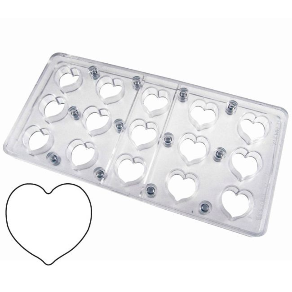 Polycarbonate moulds suitable to create printed silkscreened pralines.